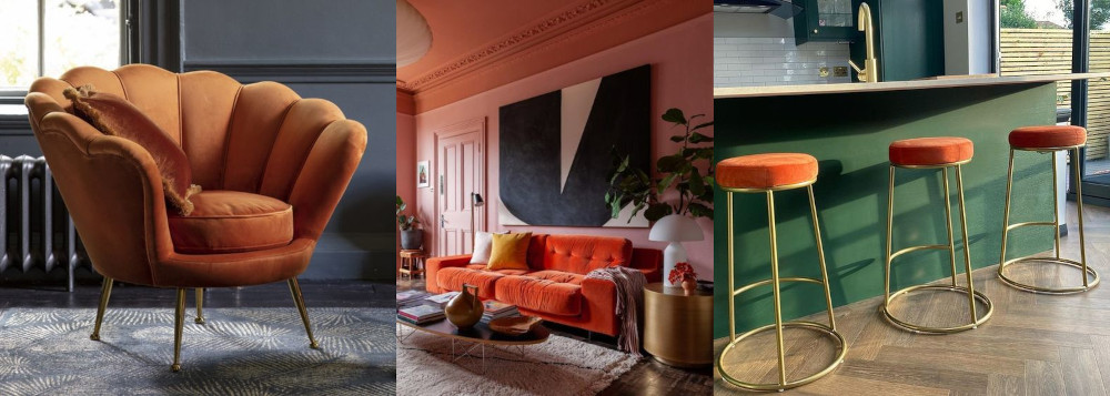 Home décor: The combination of burnt orange and gold works for multiple interior design styles, including traditional and contemporary, depending on the effect you are trying to produce. For a subtle effect, it is best to use these colors sparingly in accessories when decorating a room, like artwork, coasters, or a lampshade. For a dramatic effect, you should use burnt orange and gold in large doses, like a burnt orange accent wall with gold armchairs.