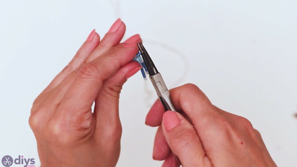 Bend the wire and then form a loop with the help of the pliers. You want to close the loop only after you’ve pushed the chain link to the area.