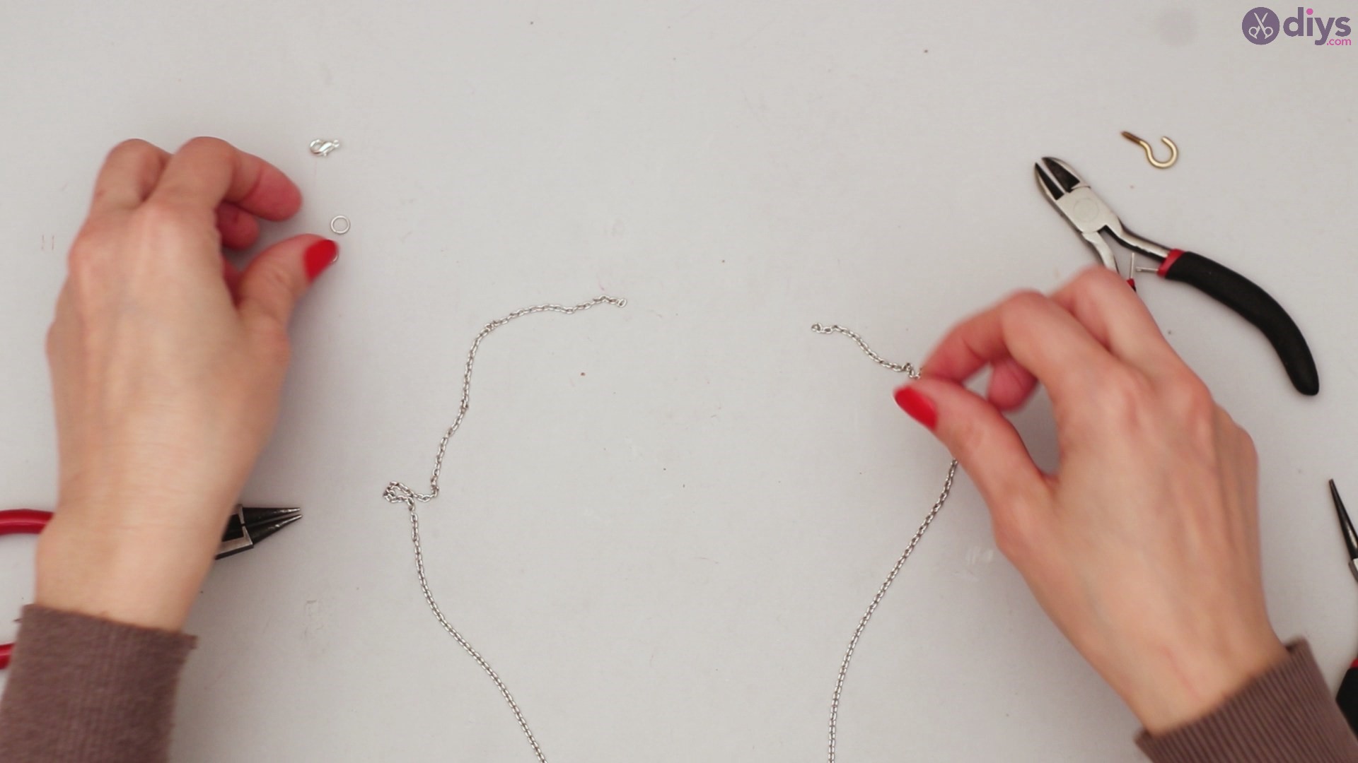 The next step is to add the chain to the cork pieces you just put together. You’ll need thechainand a fewjump rings.