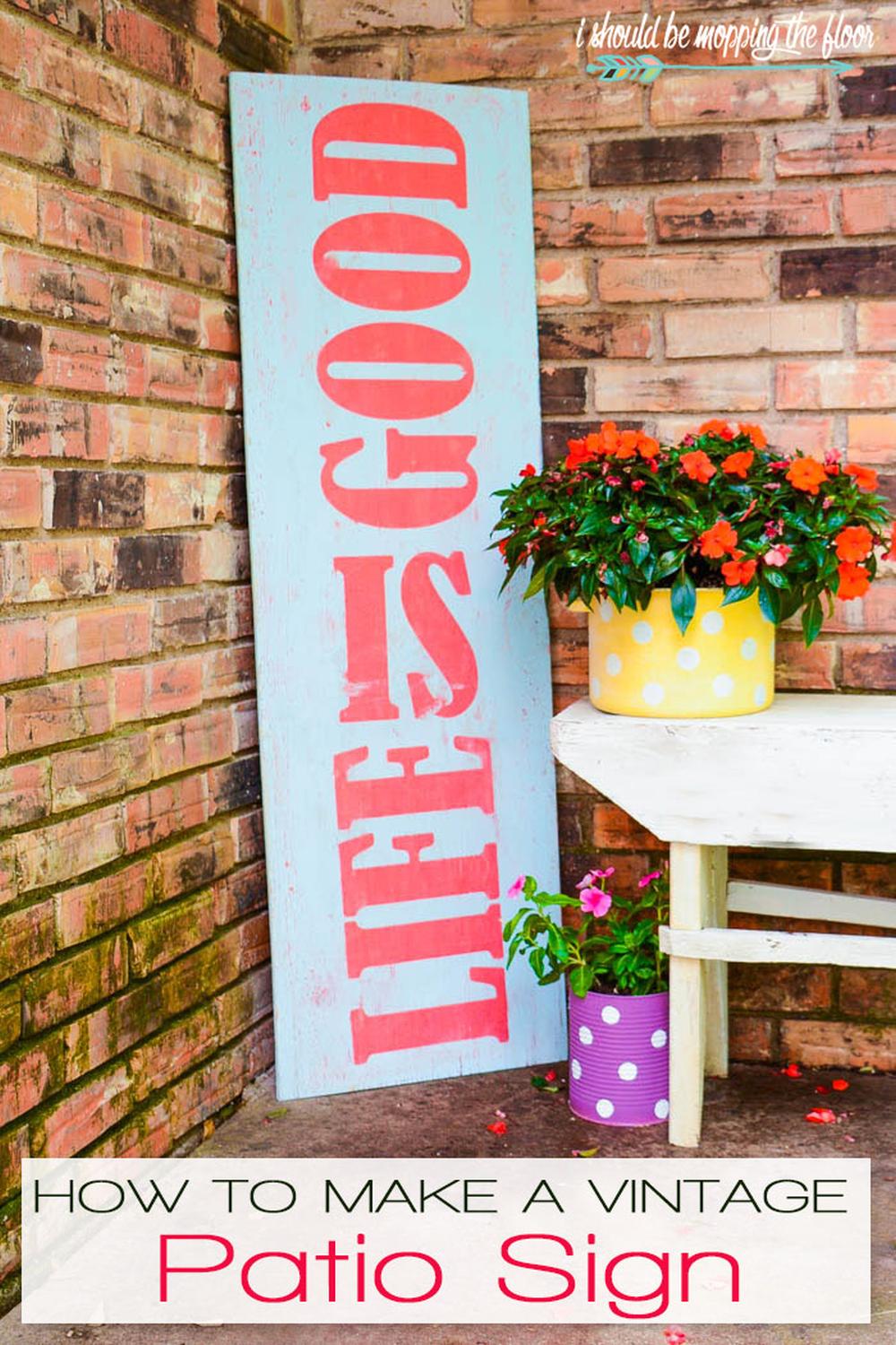 A vintage patio sign that says Life is good reminds visitors that your house is a place where everybody should be happy. You can make this vintage patio by following the simple tutorial made available by I Should Be Mopping the Floor.