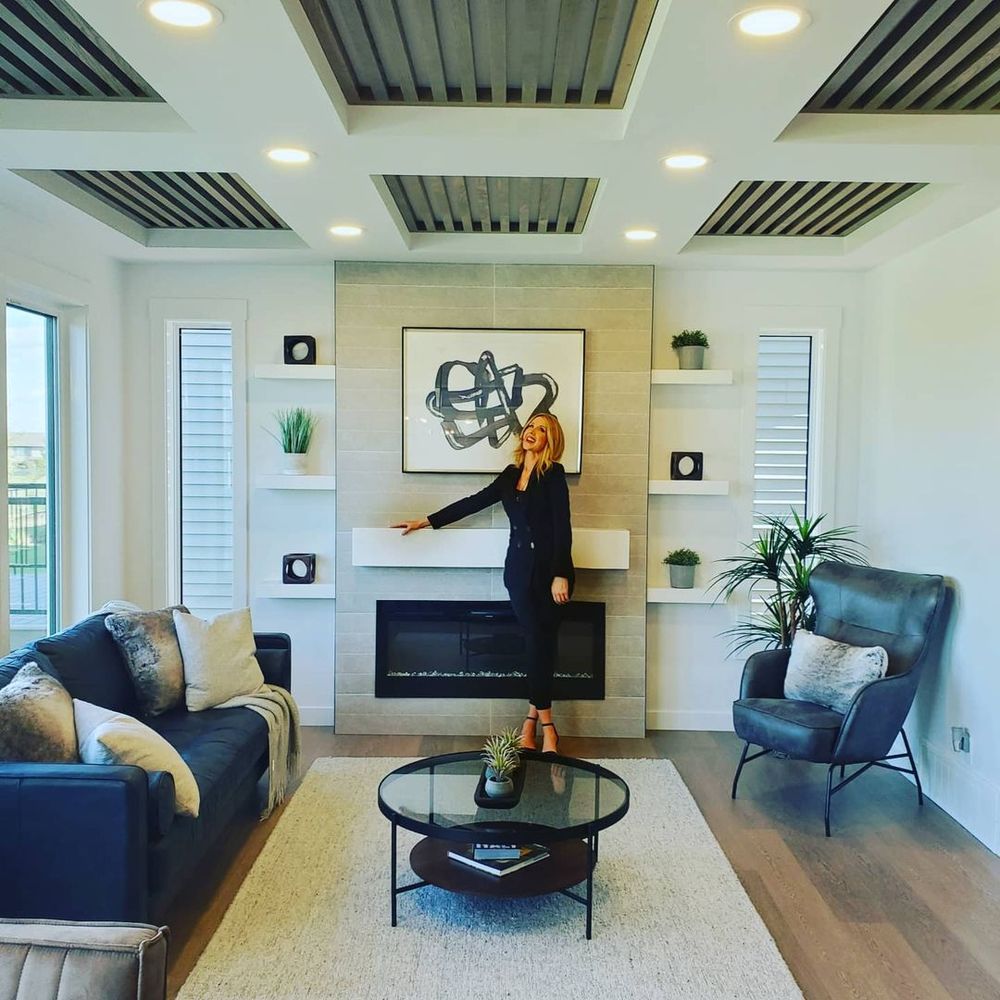 Building a coffered ceiling trim is a great way to add elegance and sophistication to any room. This Instagram post by @stacy_sells_yeg shows how it can be done using a dark pattern.