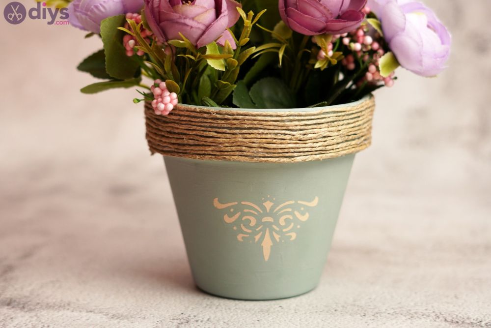 A rustic painted flowerpot is a simple way to spruce up your spring decorations without breaking the bank by painting a plain clay pot, applying a stencil, and embellishing it with hemp twine. The project is customizable since you can paint it any color and add any stencil. For instance, add stencil with flower, butterfly, a word like “Spring” or a short sentence like “Welcome spring.” Make the stencil unique by using your own handwriting. Learn how to make a rustic painted flowerpot from our guide. It is an excellent activity to do with kids as they can help with painting and adding their own creative touches. After completing the project, place a potted plant inside your newly painted flowerpot and display it on your windowsill or porch for springtime flair.