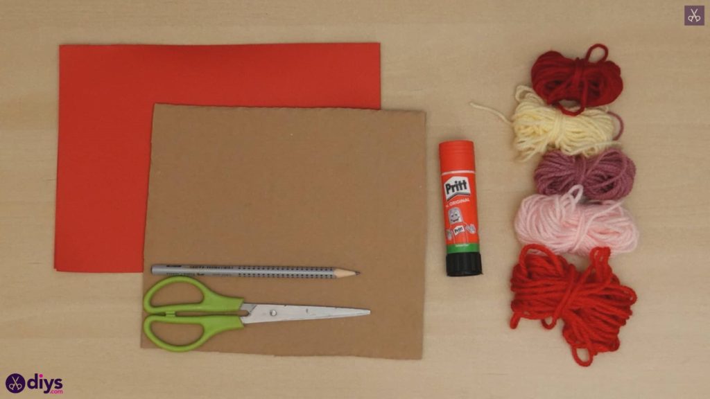 - Yarn in various colors. We used red, two shades of pink, and yellow