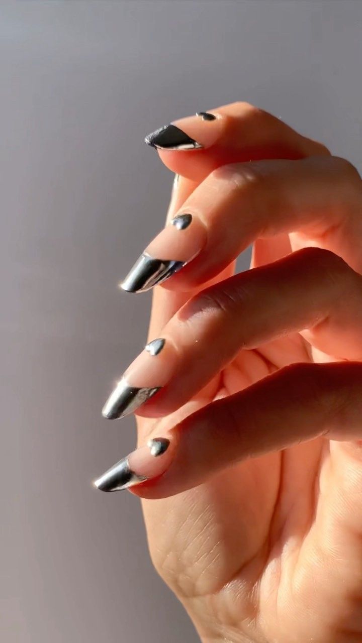 Manicures with metallic sheens are common, and this Valentine’s Day nail design with chrome hearts takes the idea to a new level. It’s all about the shine, so start with a French manicure, only this time, you’ll use silver or gold chrome polish instead of the traditional white one. Then use silver and gold nail art foil to add some hearts to the design, but don’t forget to apply a topcoat so it can last longer. Check out @jessicawashick on Instagram for the video guide.